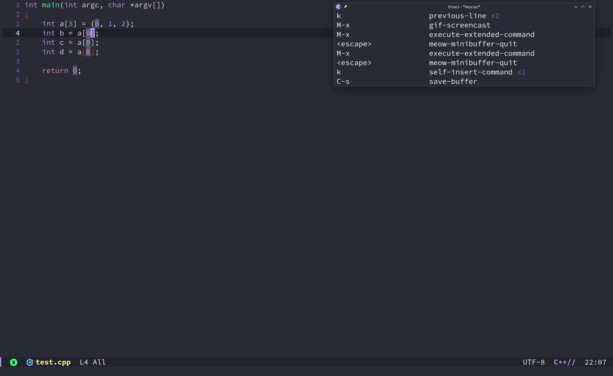 键盘宏生成了多行代码的时候,会遇到想要按照顺序生成数组的下标,比如想要使用 meow